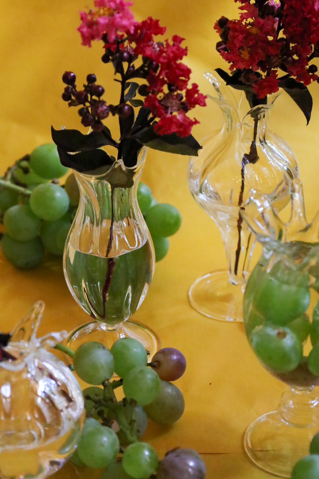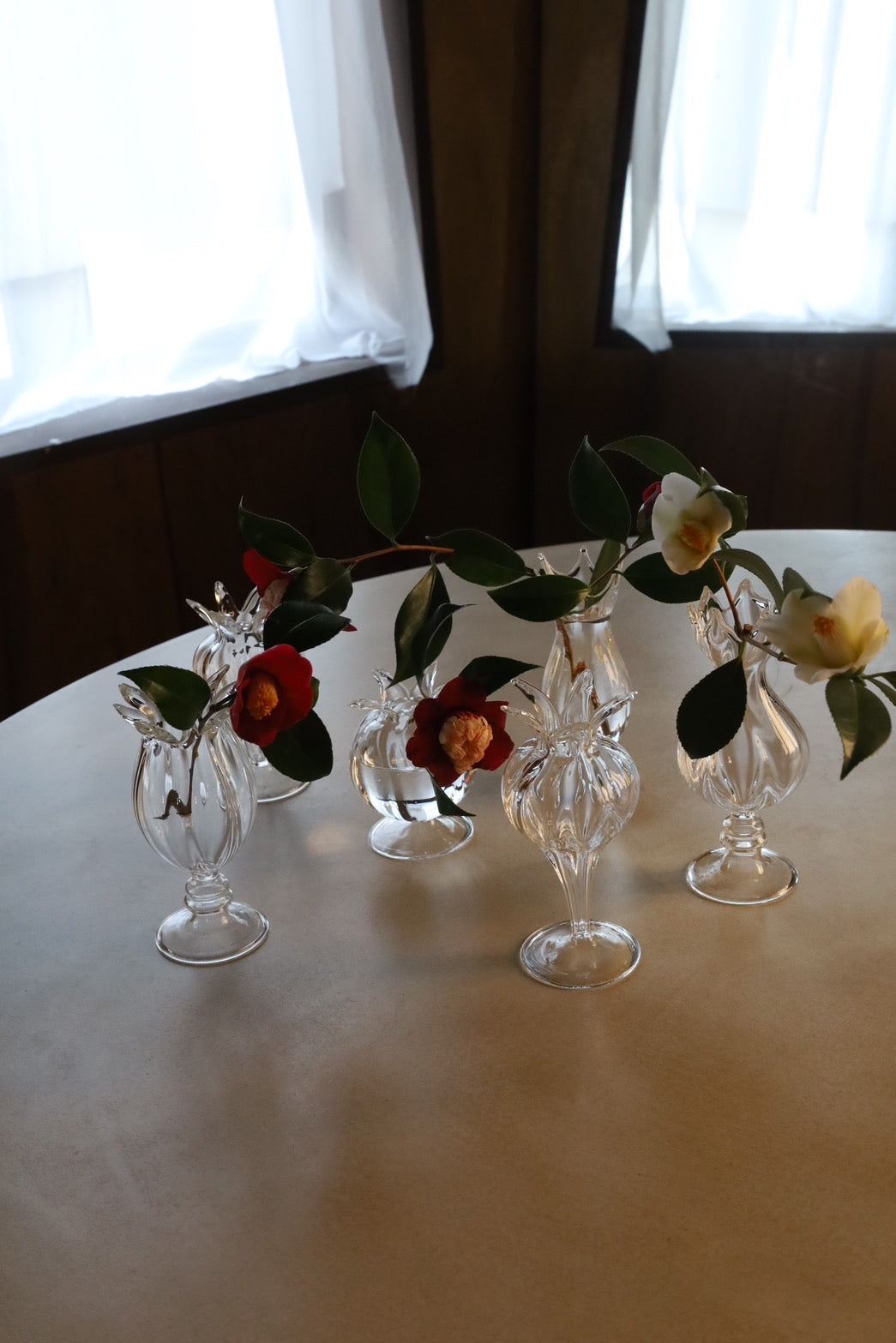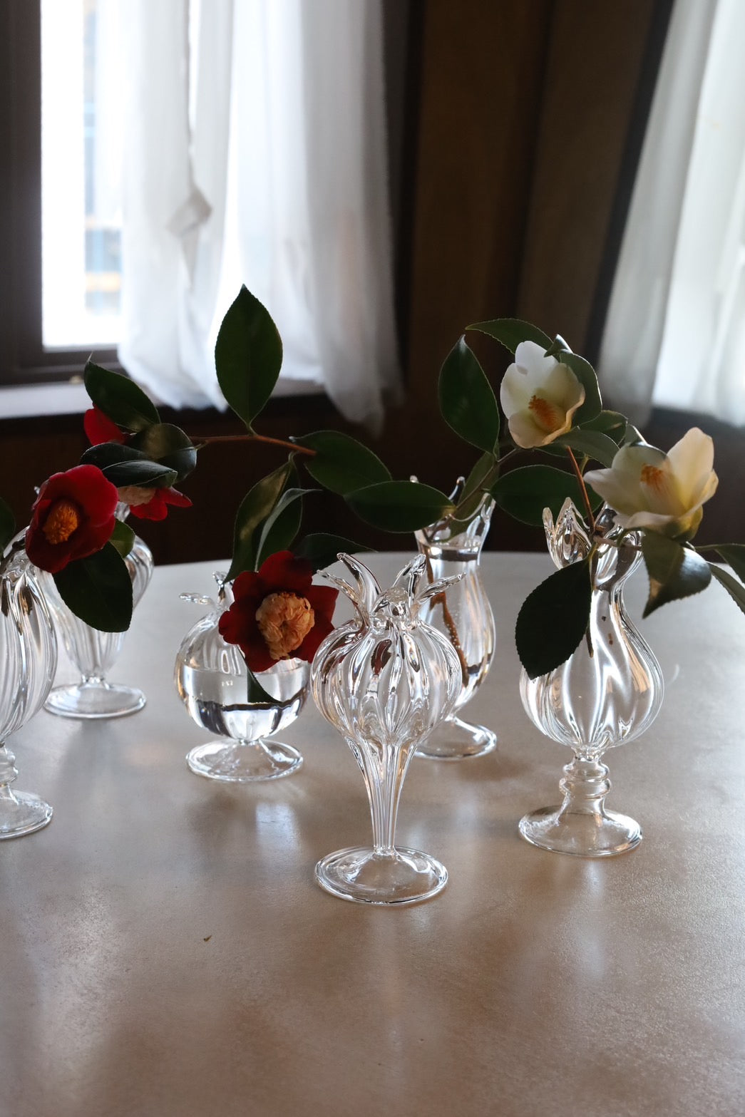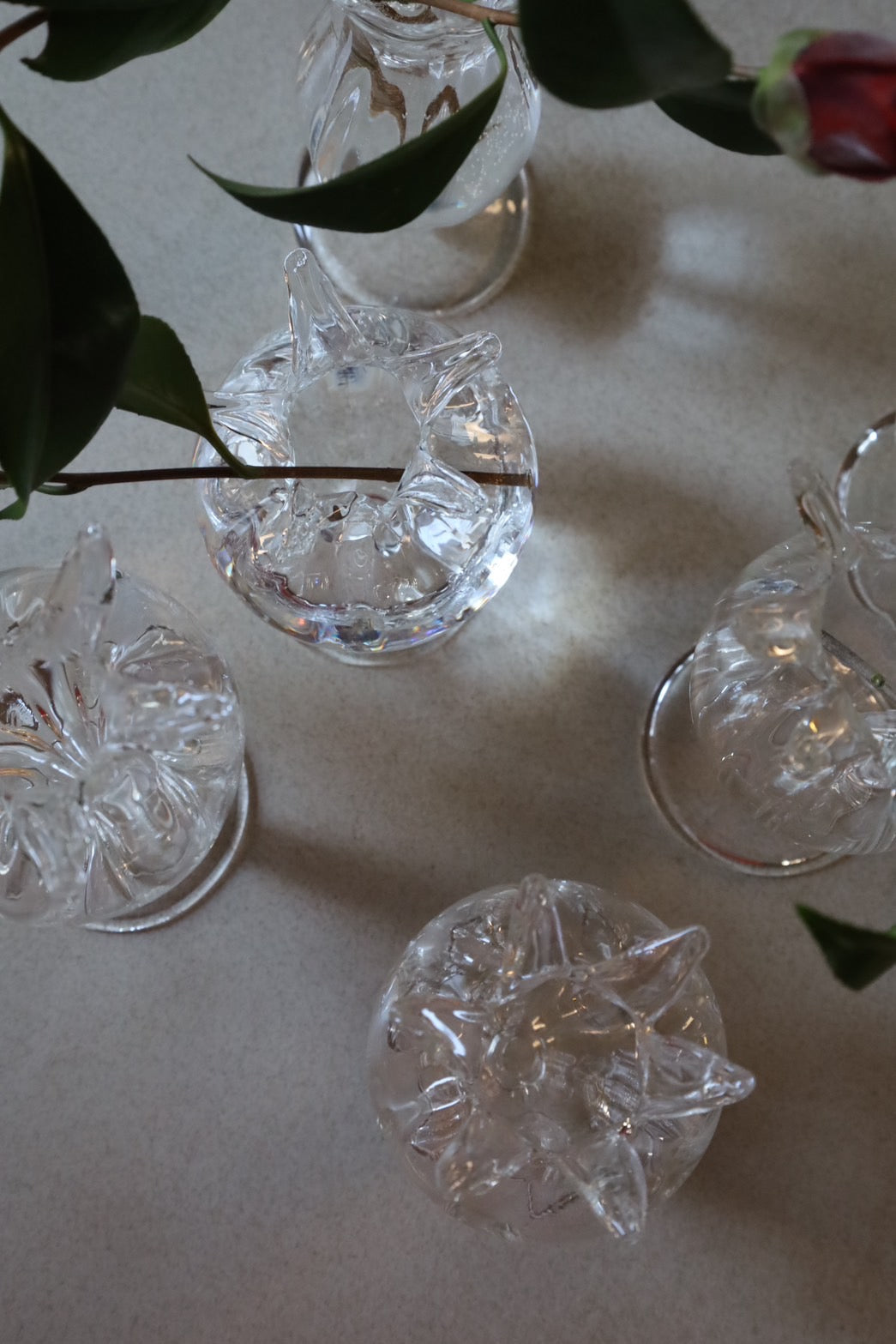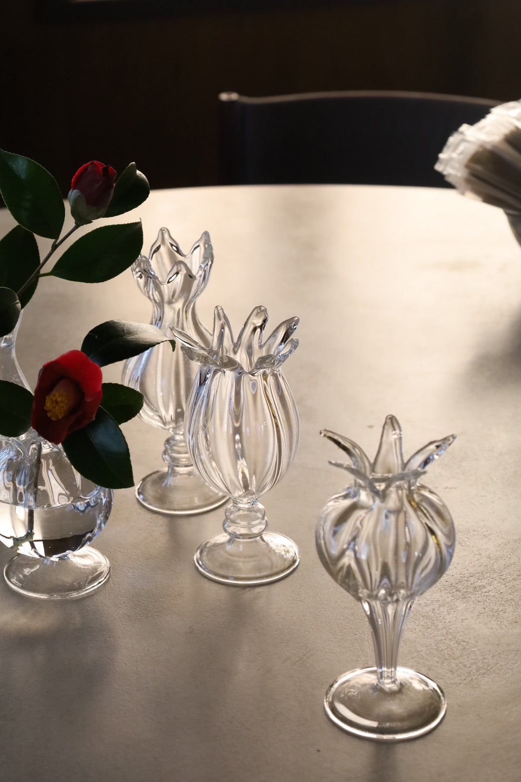ガラスのフラワーベースが入荷しました。植物のような有機的なかたちでクリアガラスの軽やさが花を素敵に演出します。3個それぞれ形の異なるアソートとなっていますので、3個セットでお届けします。